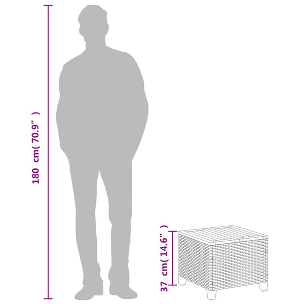 Harmaa puutarhapöytä 45x45x37cm polyrottinki ja akasiapuu
