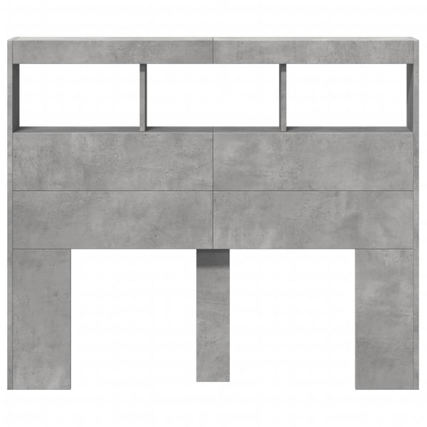 Betoninharmaa sängynpäätykaappi 120x17x102cm led-valoilla