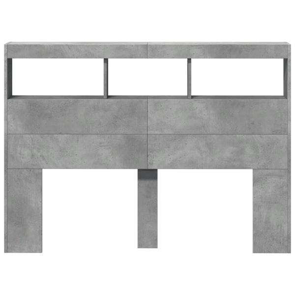 Betoninharmaa sängynpäätykaappi 140x17x102cm led-valoilla