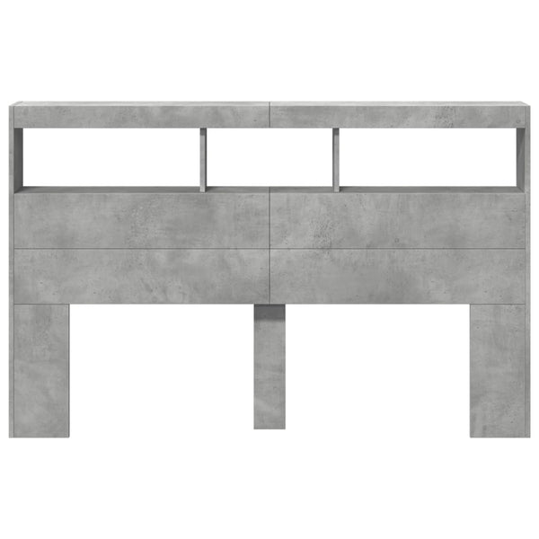 Betoninharmaa sängynpäätykaappi 160x17x102cm led-valoilla