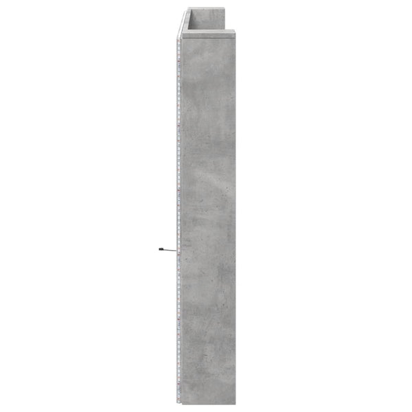 Betoninharmaa sängynpäätykaappi 220x16,5x103,5cm led-valoilla