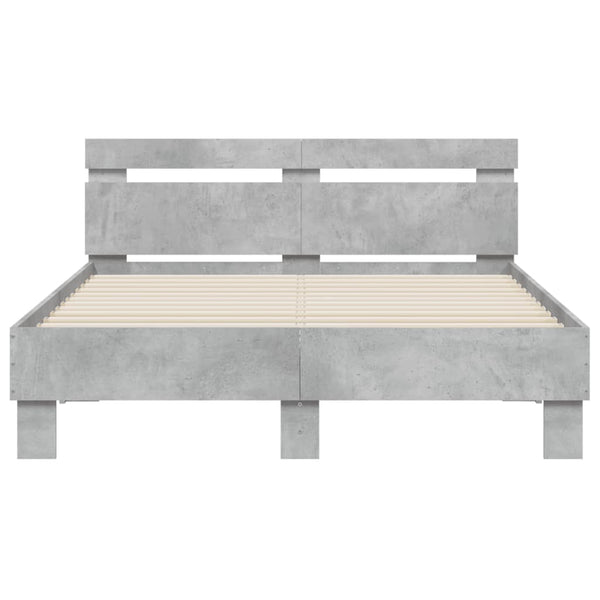 Betoninharmaa sängynrunko päädyllä ja led-valoilla Aura 120x190cm