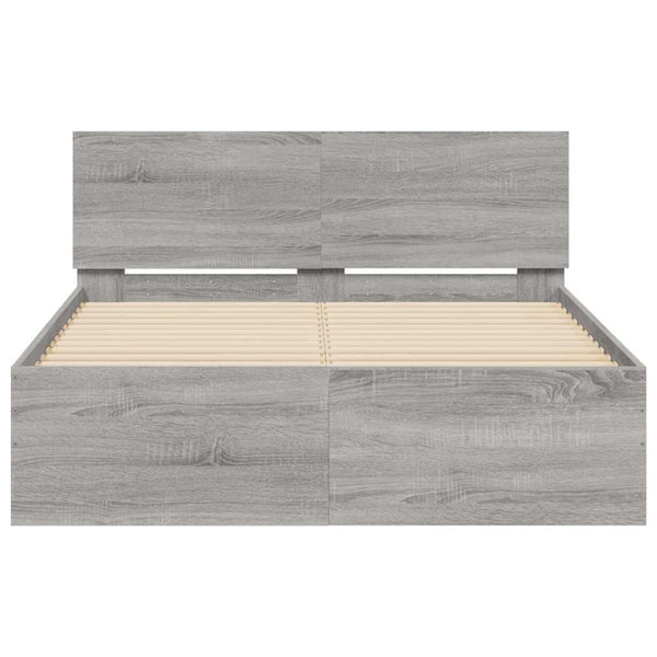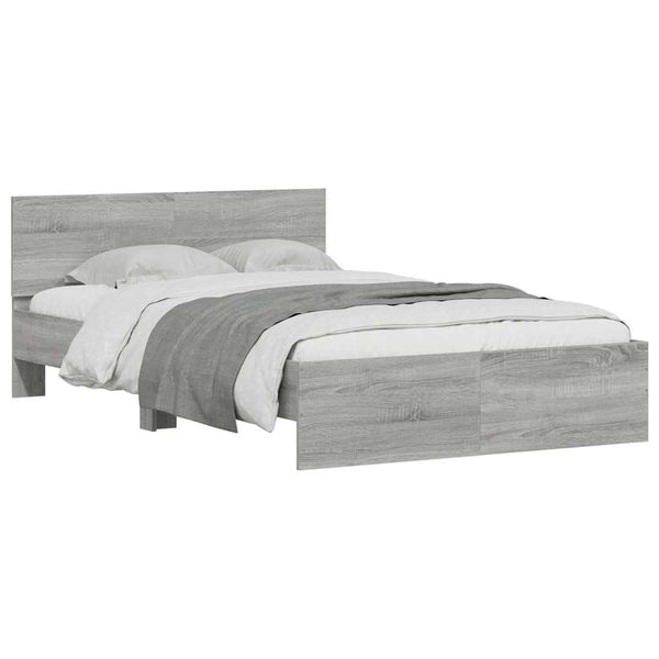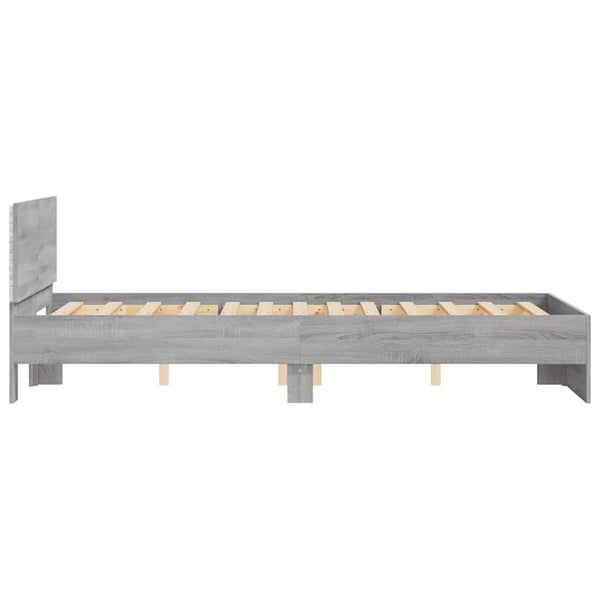 Harmaa sängynrunko päädyllä ja led-valoilla 120x190cm