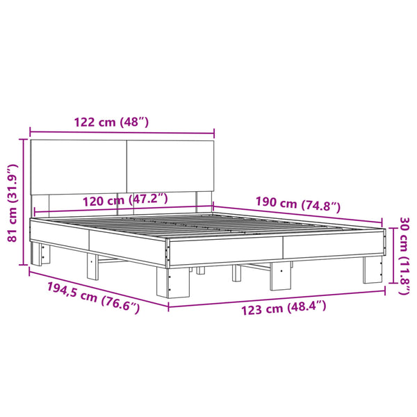 Harmaa sängynrunko 120x190cm puinen ja metalli