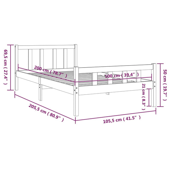 - Sängynrungon kokonaismitat: 205,5 x 105,5 x 69,5 cm (P x L x K)