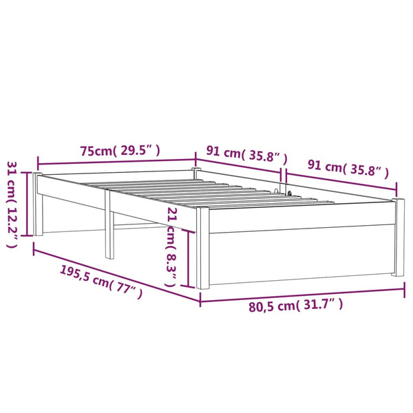 - Tämä sängynrunko sopii patjalle, jonka mitat ovat 75 x 190 cm (2FT6 Small Single).