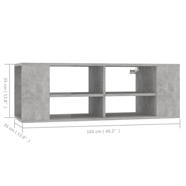 Betoninharmaa seinäkiinnitettävä tv-taso 102x35x35cm puu