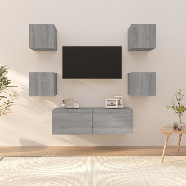 Harmaa seinäkiinnitettävä tv-taso sonoma puinen