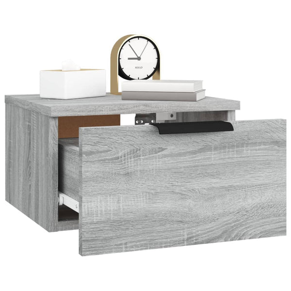 Harmaa seinäkiinnitettävä yöpöytä 34x30x20cm