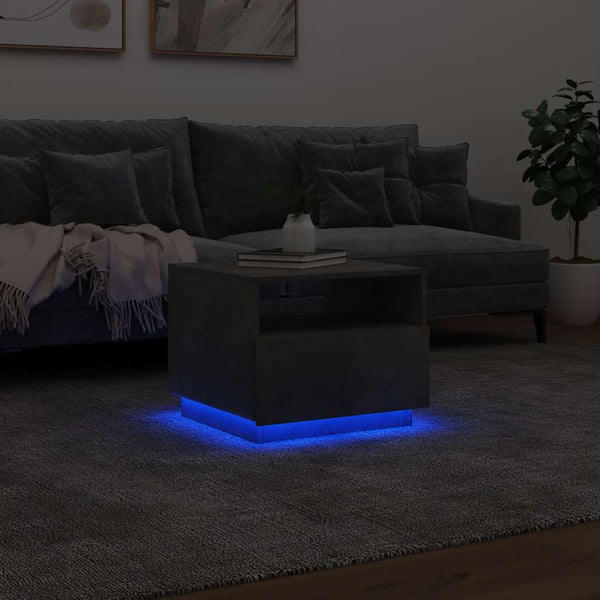 Betoninharmaa sohvapöytä led-valoilla 50x49x40cm