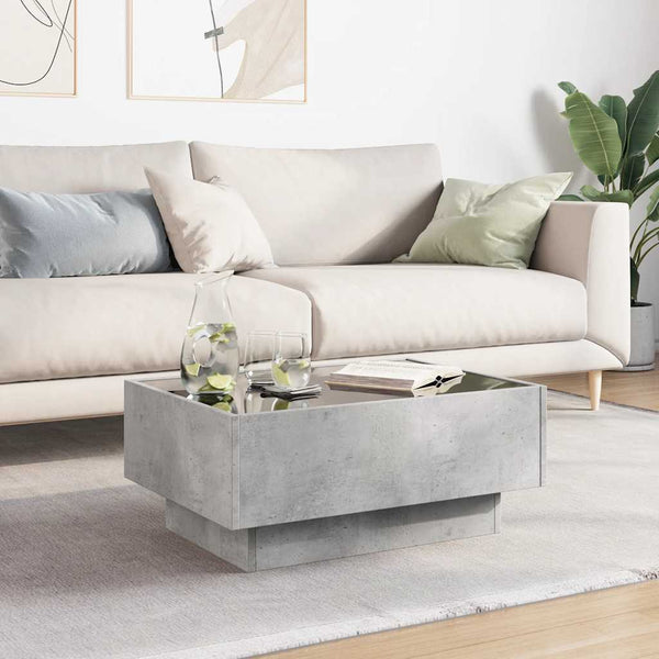 Betoninharmaa sohvapöytä led-valoilla 70x50x30cm puinen