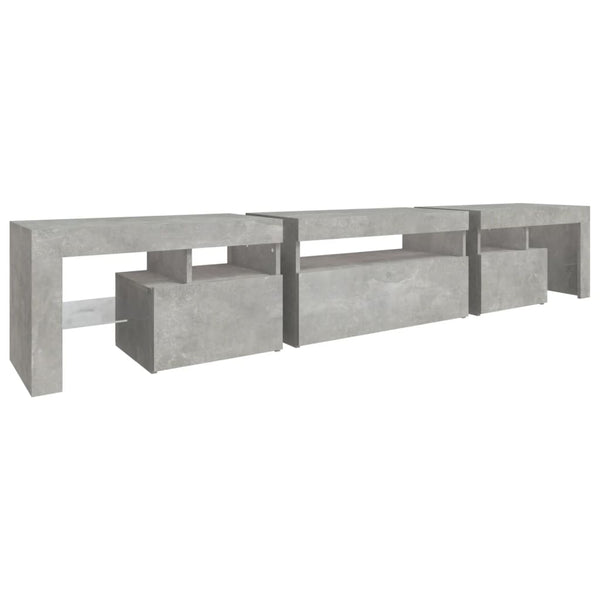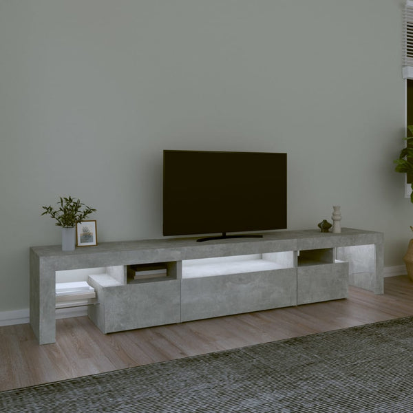 Betoninharmaa tv-taso led-valoilla 215x36,5x40cm