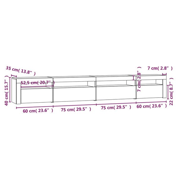 Harmaa tv-taso led-valoilla 270x35x40cm