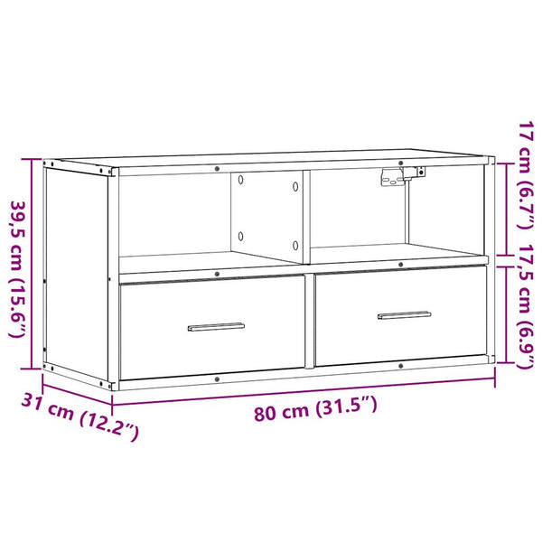 Harmaa tv-taso 80x31x39,5cm puinen ja metalli