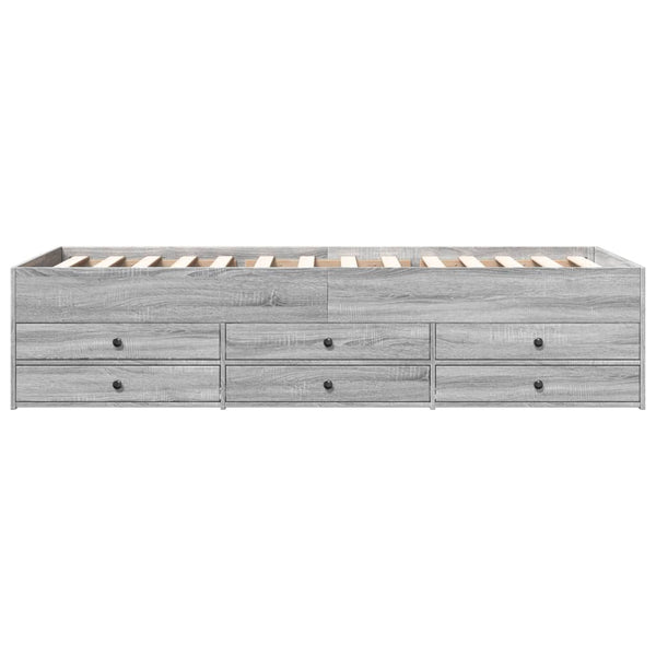 Harmaa vuodesohva laatikoilla 100x200cm puinen