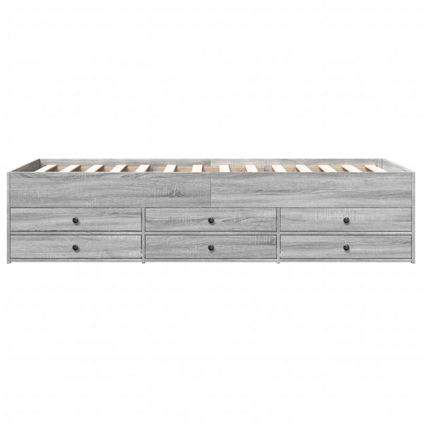 Harmaa vuodesohva laatikoilla 90x200cm puinen