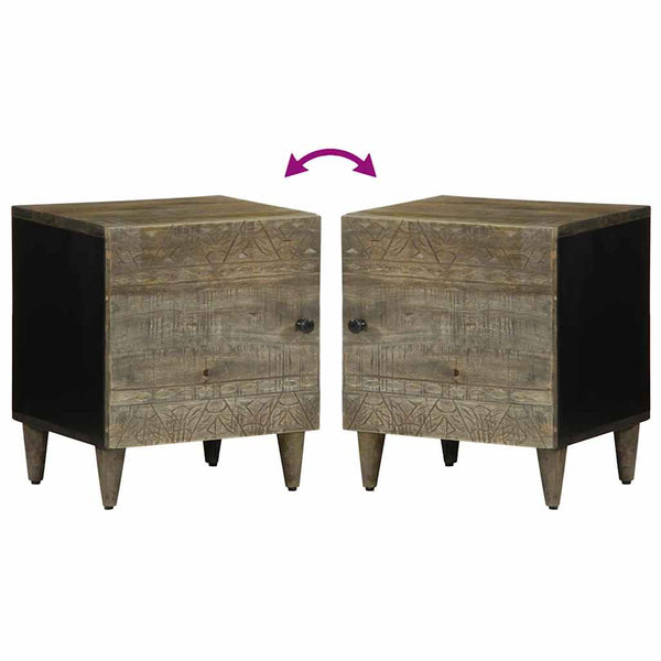 Vaaleanharmaa yöpöytäkaapit Zavica 40x33x46cm (2 kpl massiivipuu mango)
