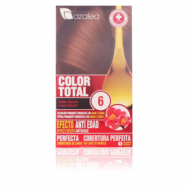 Azalea Color Total #6-Tummanvaalea on kestoväri, joka tarjoaa intensiivisen ja pitkäkestoisen värin hiuksillesi. Tuotepakkaus sisältää yhden kappaleen väriä, joka peittää harmaat tehokkaasti ja antaa hiuksille upean kiillon. Sävy tummanvaalea sopii monille ja se antaa luonnollisen lopputuloksen. Helppo käyttää kotona.