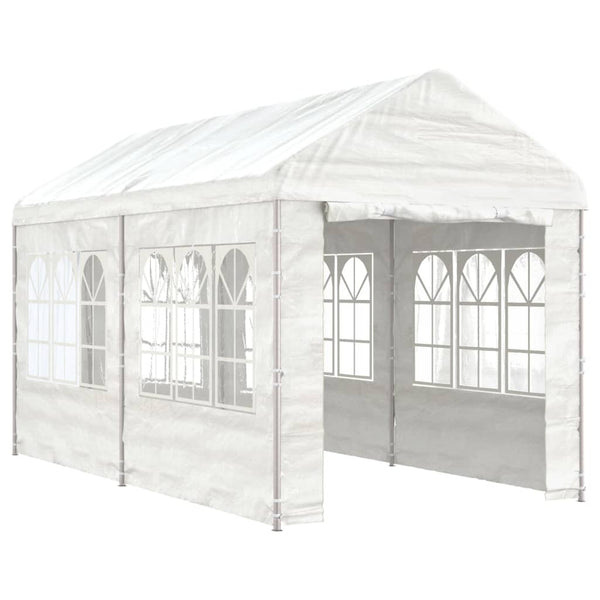 Valkoinen huvimaja katolla 4,46x2,28x2,69 m polyeteeni
