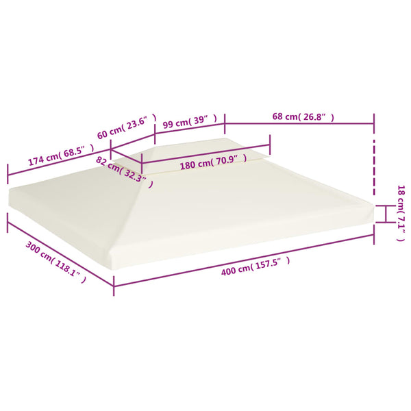 Kermanvalkoinen huvimajan vaihtokatto 3x4 m 310 g/m²