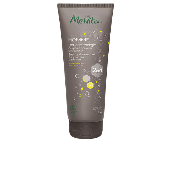 Melvita Hombre Suihkugeeli - Shampoo Mies 200 ml on erityisesti miesten iholle ja hiuksille suunniteltu tuote. Se yhdistää suihkugeelin ja shampoon ominaisuudet tehokkaasti puhdistamaan ja raikastamaan. Luonnolliset ainesosat kuten luomusertifioitu aloe vera ja ravitsevat uutteet hoitavat ihoa ja hiuksia samalla antaen virkistävän tuoksun. Tuote on myös ekologinen valinta, sillä se on pakattu ympäristöystävälliseen pakkaukseen.