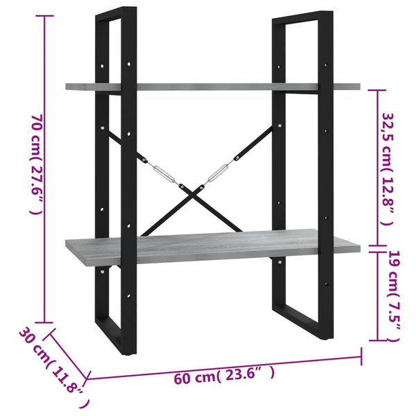 Harmaa kirjahylly 60x30x70cm 2-kerroksinen, sonoma, puinen