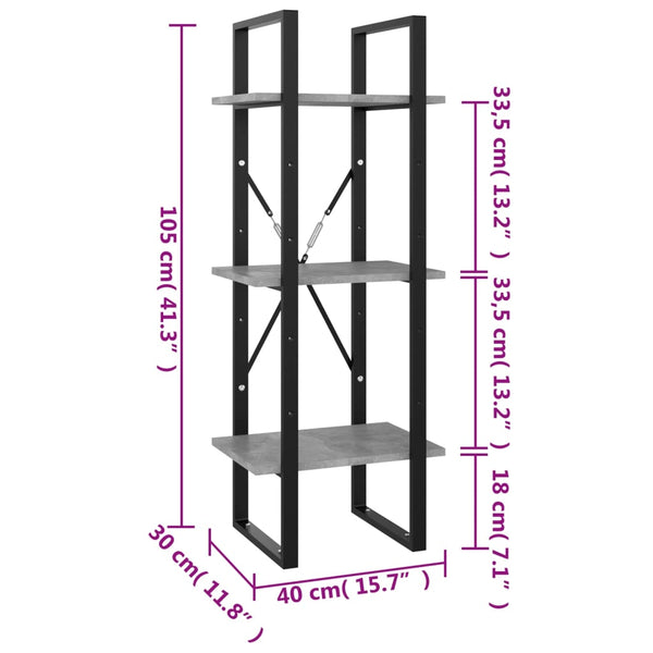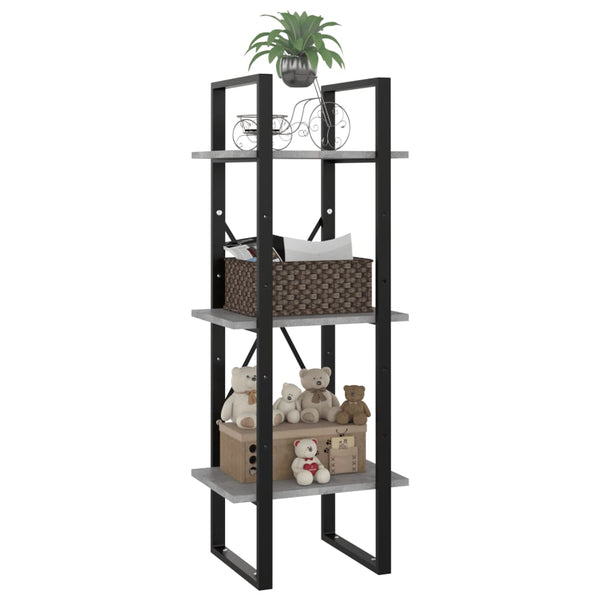 Betoninharmaa kirjahylly 40x30x105cm 3-tasoinen, puinen