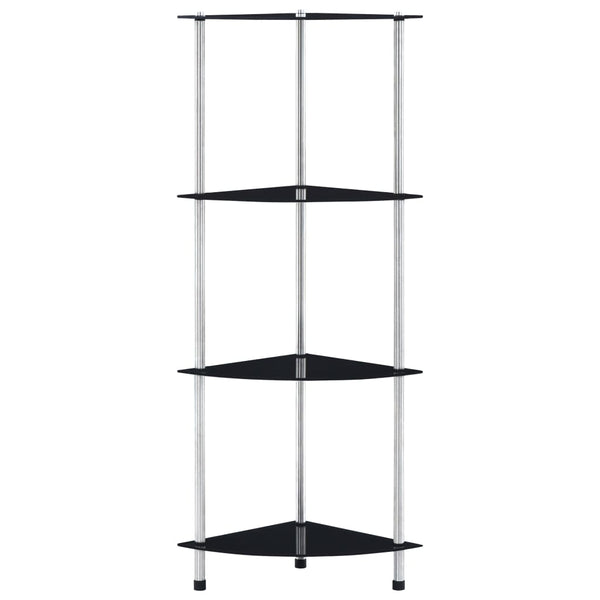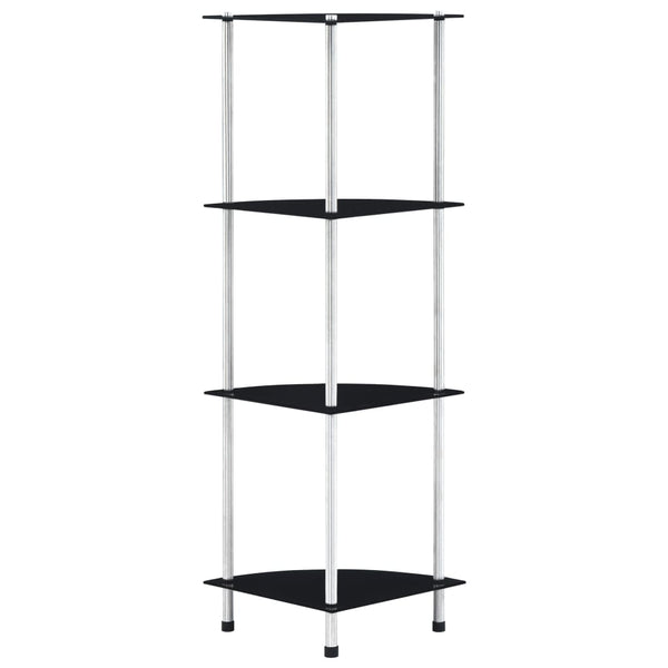 Musta 4-kerroksinen hylly 30x30x100cm karkaistu lasi