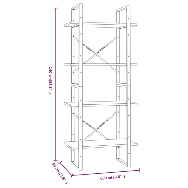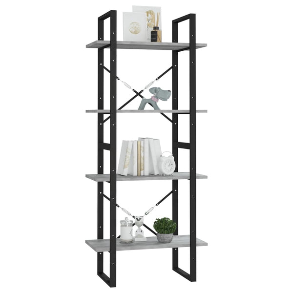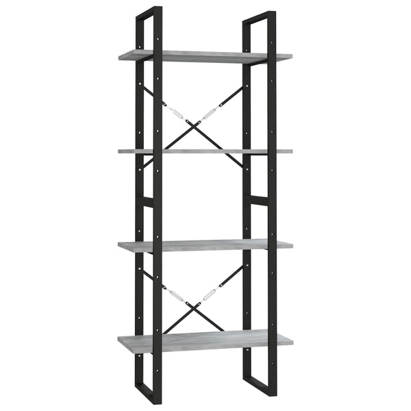 Harmaa kirjahylly 60x30x140cm 4-kerroksinen, puinen