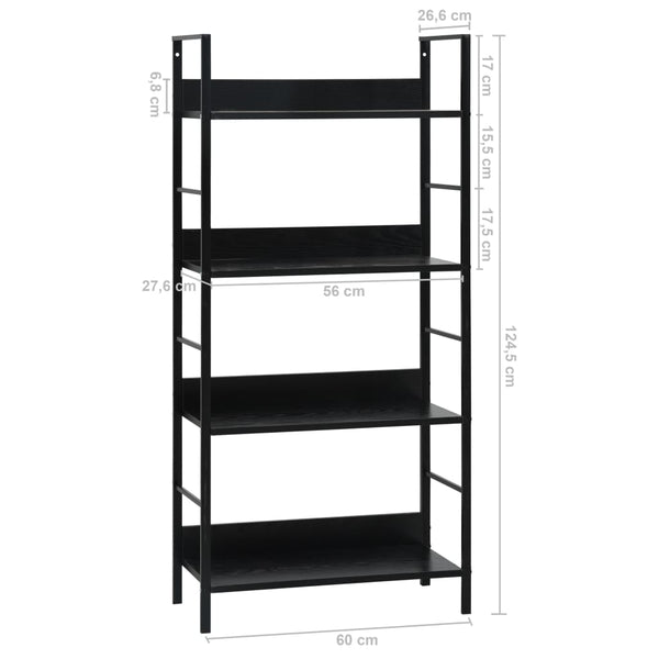 Musta kirjahylly 60x27,6x124,5cm 4-tasoinen, puinen