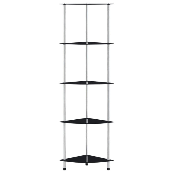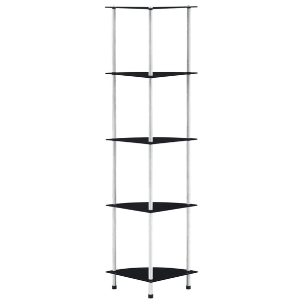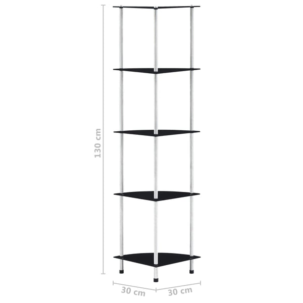 Musta hylly 30x30x130cm 5-kerroksinen, karkaistu lasi