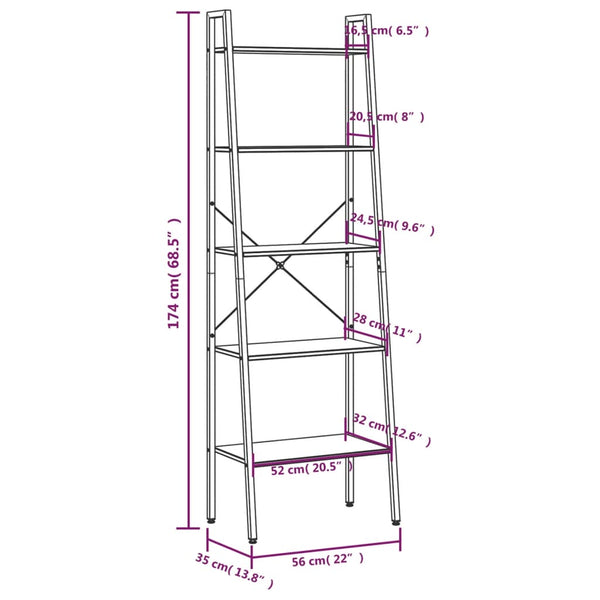 Vaaleanruskea ja musta lattiahylly 56x35x174cm 5-kerroksinen