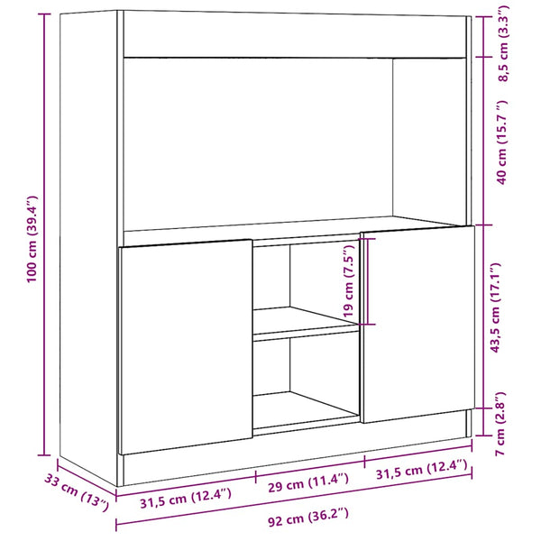 - Kokonaismitat: 92 x 33 x 100 cm (L x S x K)