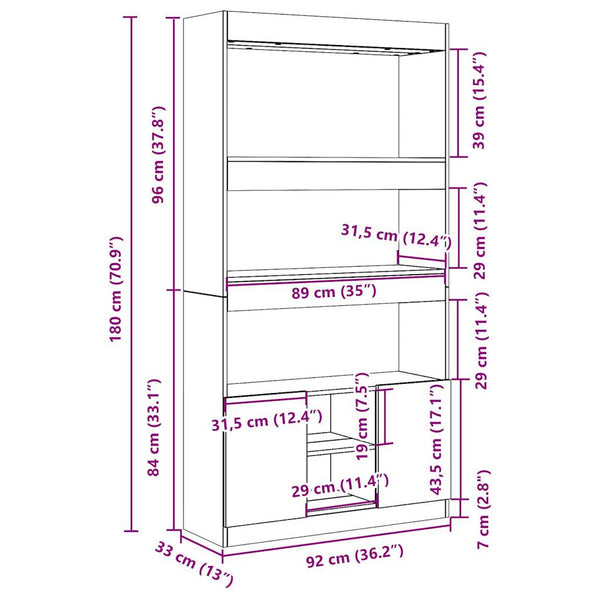 - Kokonaismitat: 92 x 33 x 180 cm (L x S x K)