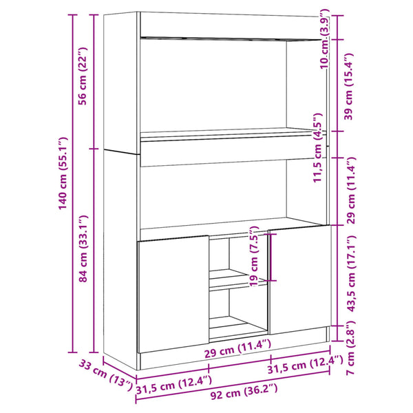 - Hyllyn mitat (keski): 89 x 31,5 x 29 cm (L x S x K)