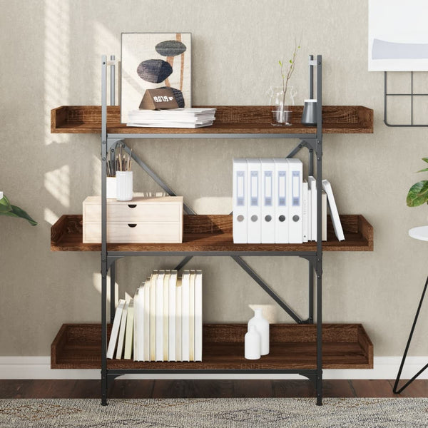 Ruskea tammi kirjahylly 100x33x108,5cm 3 tasoa, puinen