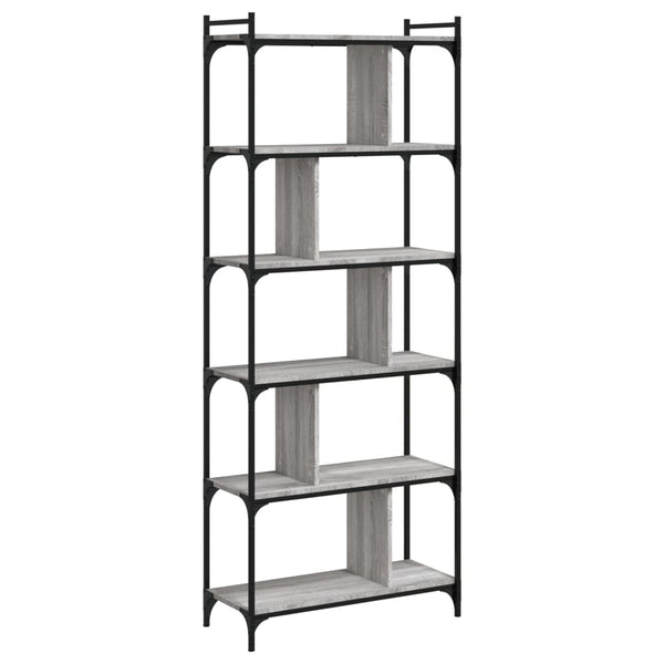 Harmaa kirjahylly 76x32x192cm 6 kerrosta sonoma puinen