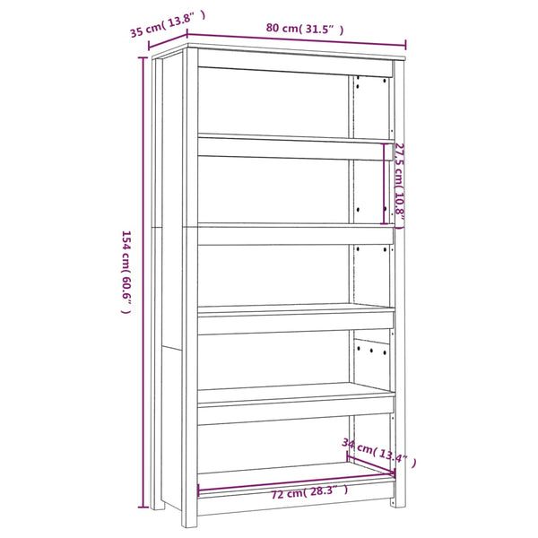 Hunajanruskea kirjahylly 80x35x154cm mänty