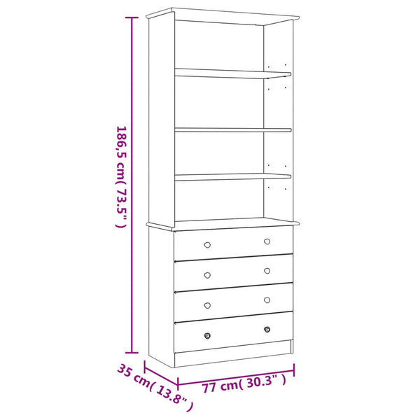 Valk kirjahylly laatikoilla alta 77x35x186,5cm mänty