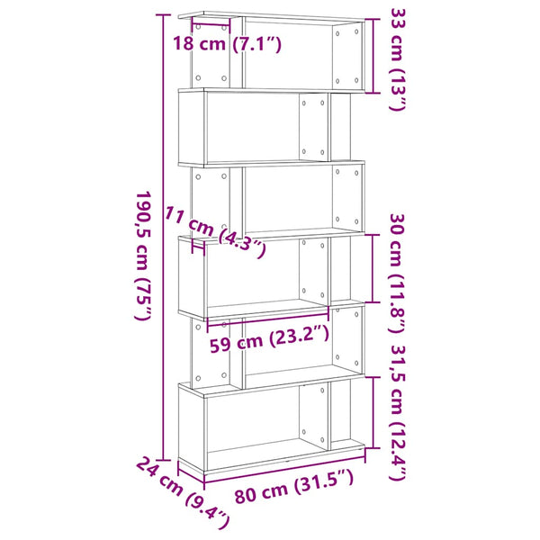 Musta kirjahylly 80x24x190,5cm engineered wood