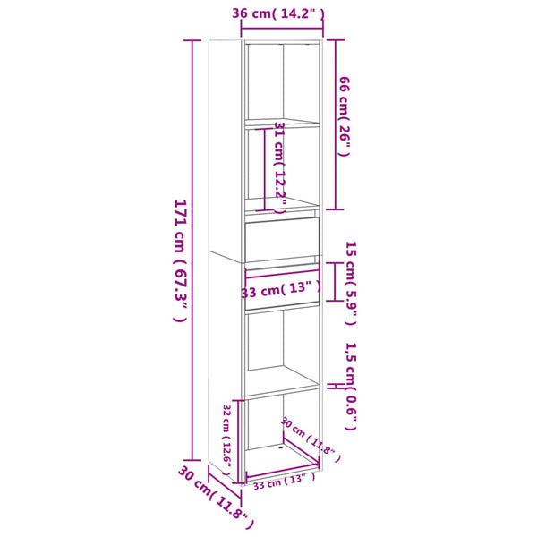 - Mitat: 36 x 30 x 171 cm (L x S x K)