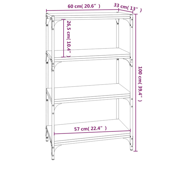 Ruskea kirjahylly 60x33x100cm puinen ja teräs