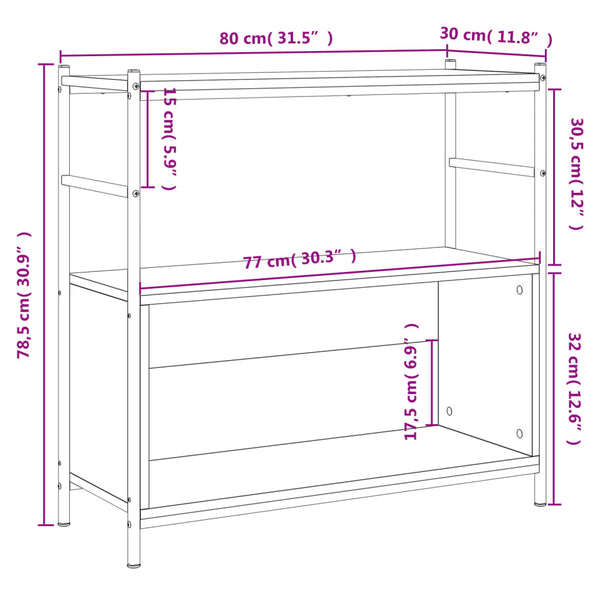 Sonoma tammi kirjahylly 80x30x78,5cm puinen ja rauta