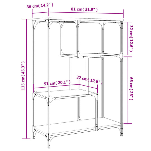 Sonoma tammi kirjahylly 81x36x115cm puinen ja teräs