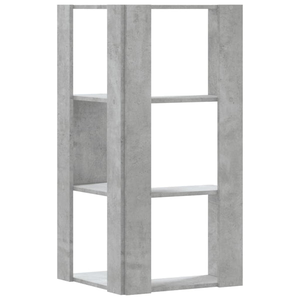 Betoninharmaa kulmakirjahylly 50x50x102cm 3 tasoa, puinen