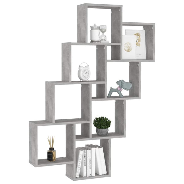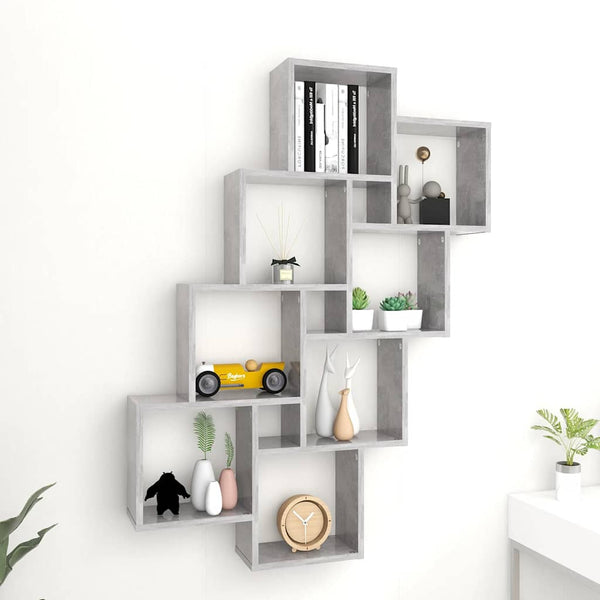Betoninharmaa kuutioseinähylly 90x15x119cm puinen