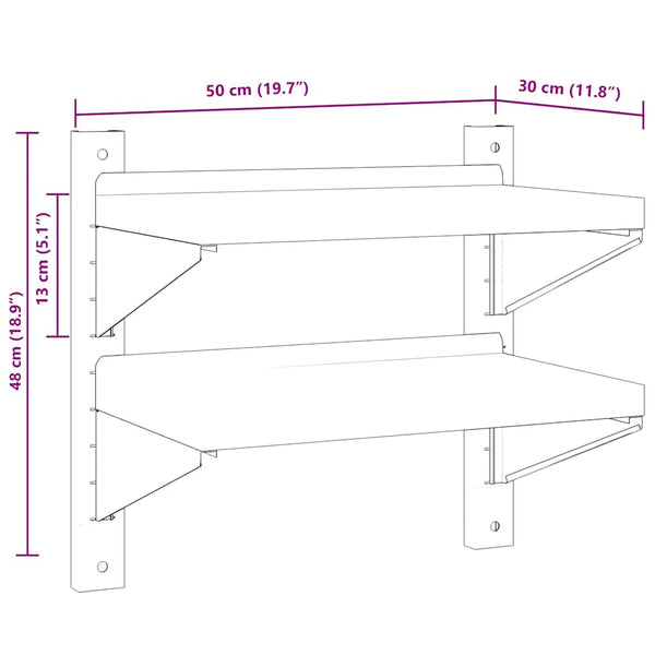 Hopea seinähylly 50x30x60cm 2-kerroksinen ruostumaton teräs