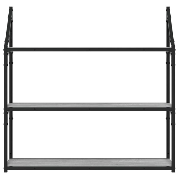 Harmaa seinähylly 80x21x78,5cm 3 kerrosta sonoma puinen