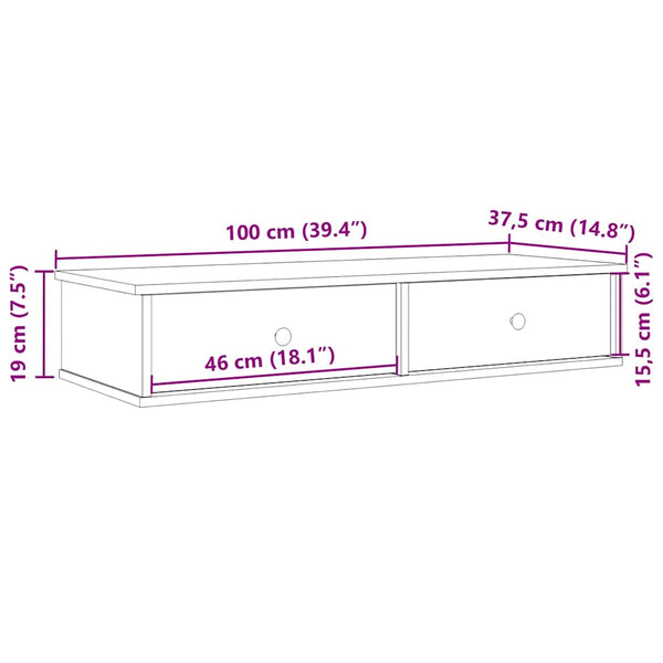 Betoninharmaa seinähylly laatikoilla 100x37,5x19cm puinen