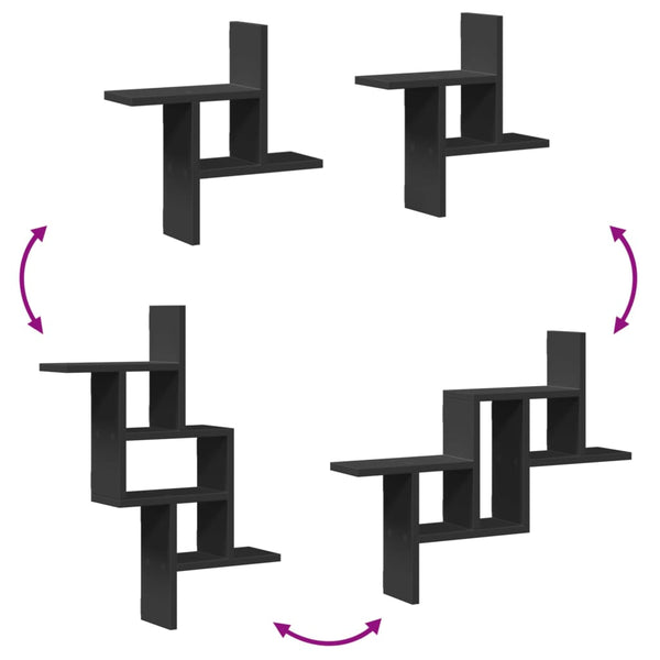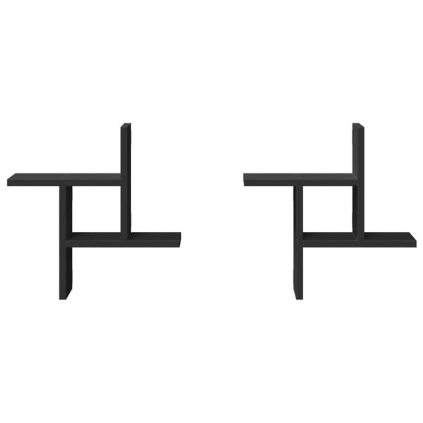 Musta seinähyllyt 38x12x38cm 2 kpl puinen